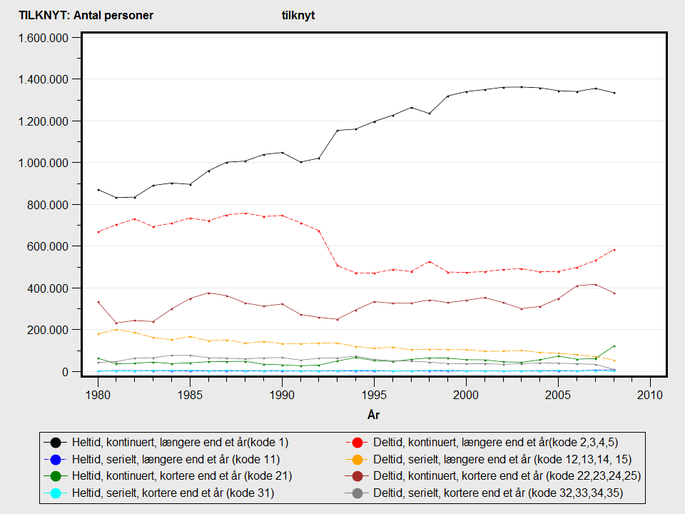 | 03 | Deltid (>= 20-29 timer), kontinuert, længere end et år | 01-01-1980 | 31-12-3000 |