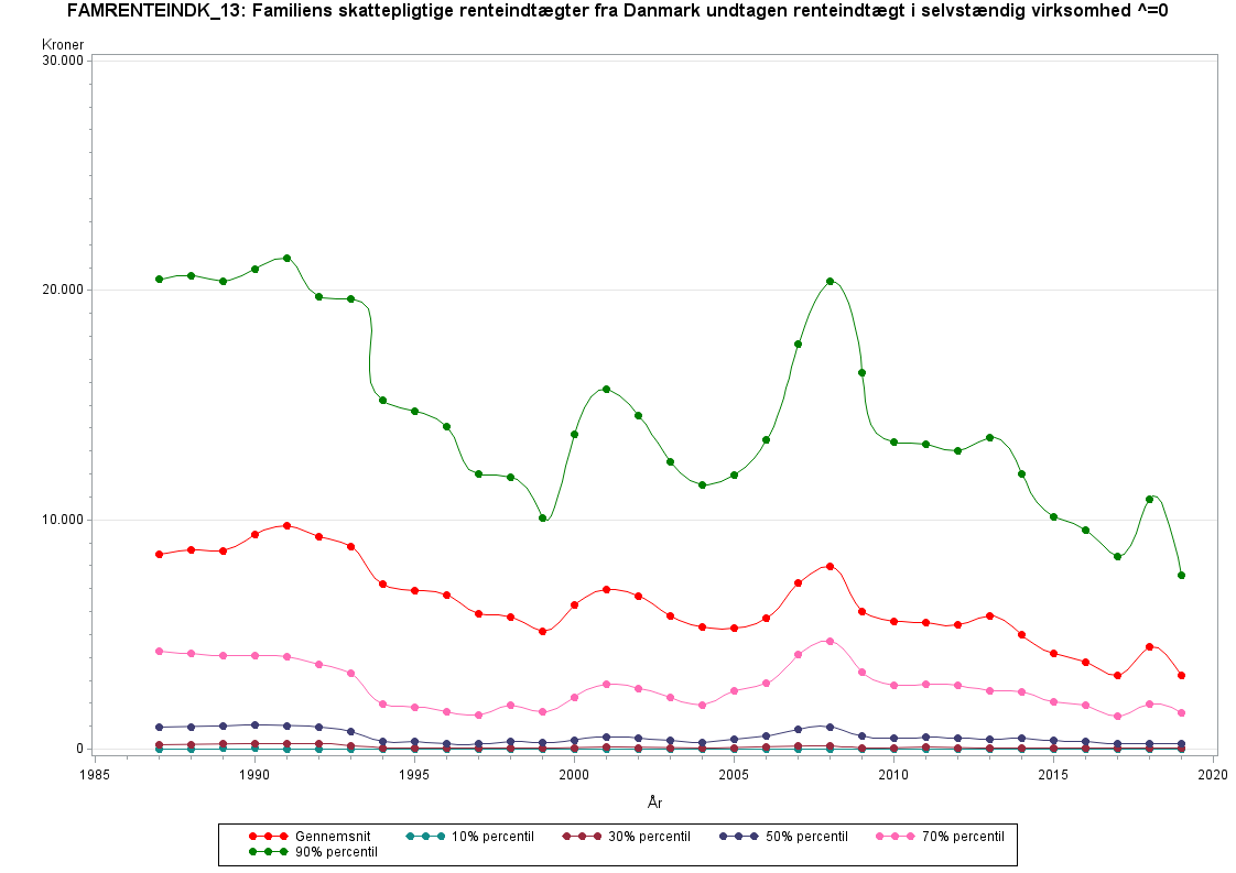 Fra 2000: Inkl. renter fra rene obligationsbaserede investeringsforeningsbevi-ser (før 2000 i variablen øvrig formueindkomst (FAMOEVRIGFORMUE)).