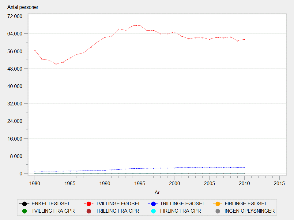 Barnets nummer i fødslen er dannet udfra fødselsoplysninger fra Sundhedsstyrelsen og fra CPR-registret. Den primære kilde er de såkaldte spædbørnsfiler fra Sundhedsstyrelsen. Enkelte tvillinger og trillinger er identificeret på baggrund af CPR-registret. Dette fremgår af variablens værdisæt. Personer identificeret i CPR-registret født af samme mor på samme dag betragtes som flerfødsler. Fødselsnummeret tildeles tilfældigt. Hvis børnene er født over midnat betragtes det også sen en flerfødsel. Hvis der er mere end én dag mellem fødslerne betragtes det som særskilte fødsler.For børn, født før 1973, har ANTAL værdien 99, idet oplysningen om barnets palcering i en flerfødsel stammer fra Spædbarnsfilen, som dækker fødsler fra og med 1. januar 1973. Oplysningen findes dog også på et mindre antal børn, født i 1972, som er døde i 1973 (dvs. i 1. leveår) hvor oplysningen er lagt ind i registeret i forbindelse med dødsfaldet. Oplysningen er også = 99 for alle, der ikke er født i Danmark.