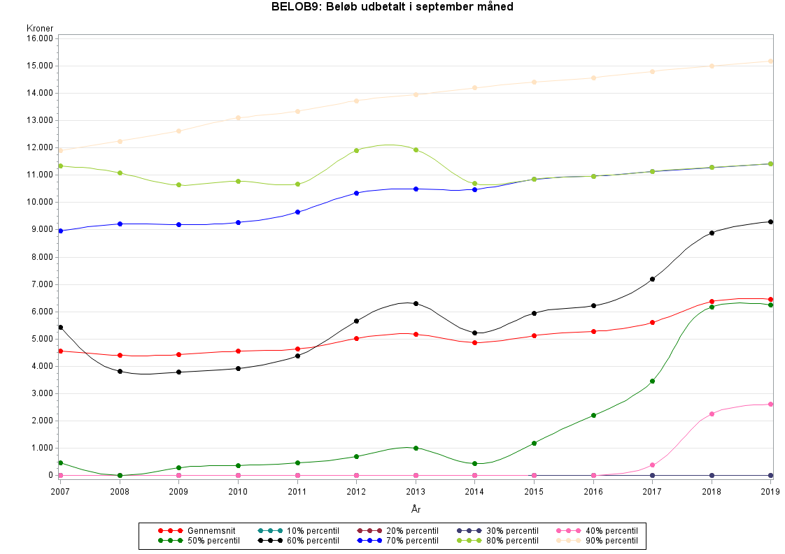 Udbetalt beløb i september måned - beregnet ud fra hvilken måned, den sidste dag i den periode, som udbetalingen dækker, lå i.Beløbet kan være negativt i forbindelse med efterreguleringer eller ved ydelser, der er bevilget med tilbagebetalingspligt, eller hvor ydelsen skal tilbagebetales, fx fordi modtageren har givet forkerte oplysninger til kommunen. De sker ret ofte, at der udbetales et beløb, der dækker en længere periode. Især gælder det for løntilskudsordningerne, hvor beløbet udbetales til en arbejdsgiver.