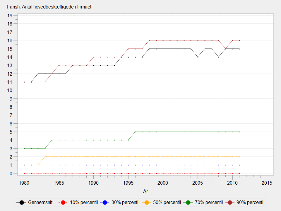 Variablen angiver det samlede antal hovedbeskæftigede i det enkelte firma, dvs. hos den samme arbejdsgiver defineret ved variablen ARBGNR (arbejdsgivernummer), som identificerer det enkelte firma.Antallet af hovedbeskæftigede ansatte pr. firma er dannet via aggregering af de arbejdssteder, der indgår i det pågældende firma i det givne år. Der aggregeres for variablen ARBGNR. Hver gang der optræder et nyt arbejdssted tilhørende firmaet med identisk ARBNGR, det vil sige en ny record med det samme ARBGNR, men en ny arbejdsstedskode (ARBSTK), tillægges antallet af hovedbeskæftigede for det enkelte arbejdssted i aggregeringen.