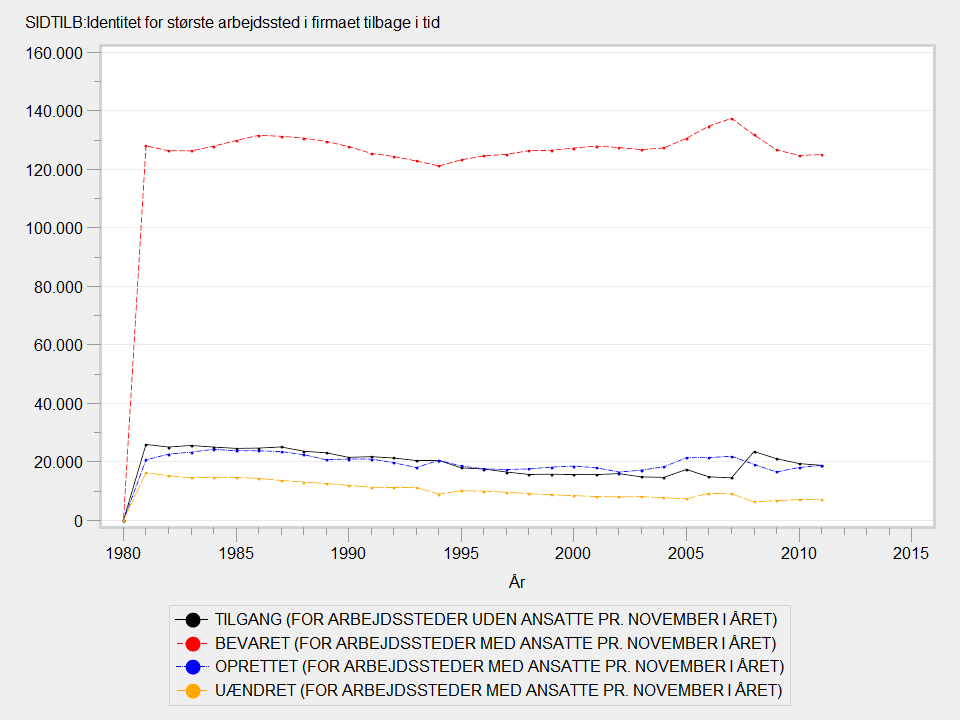 For mere information om dette se variablen IDTILB (Identitet for arbejdssted tilbage i tid) og hovedrapporten kap. 4.