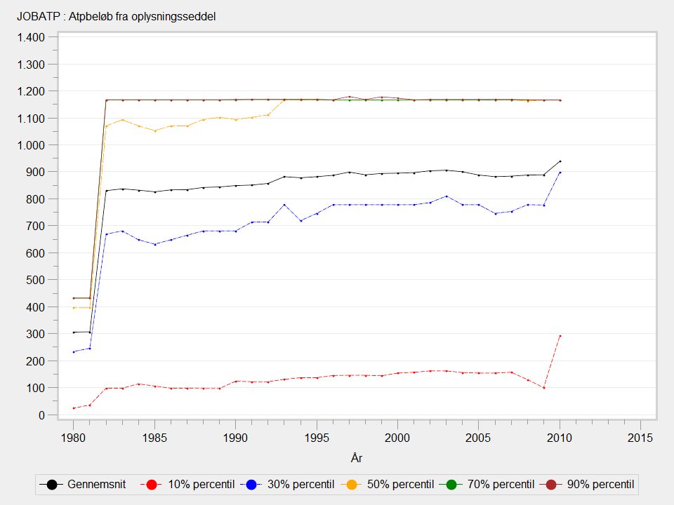 Udviklingen i ATP-beløbet i 2008 skyldes at datagrundlaget for lønmodtagerbeskæftigelsen ændres til eIndkomst fra og med IDA2008. For yderligere information om eIndkomst se emnegruppen Beskæftigelse og herunder statistikområdebeskrivelsen "Befolkningens tilknytning til arbejdsmarkedet (RAS)".