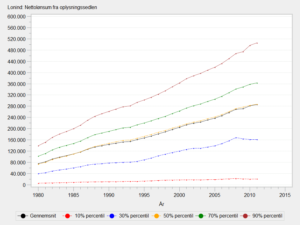 Graf og tabel er udarbejdet for personer med en lønindkomst i løbet af året, der er >0.