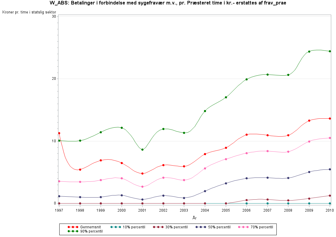 Betaling i forbindelse med sygefravær m.v. udgøres af alle betalinger i forbindelse med fravær, med undtagelse af almindelig feriefravær. Det kan være fravær i forbindelse med egen sygdom, børns sygdom, barsel, ulykke og andet fravær, herunder særlige feriefridage, børnefridage, omsorgsdage og lignende fridage.W_ABS hedder idag FRAV_PRAE og findes fra år 2009 i LONN registret. W_ABS findes dog i det gamle LON register indtil 2010.
