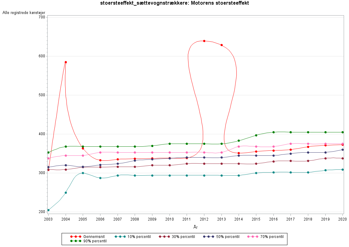 Gyldig fra 1992. Tabellen med fordelinger på drivkrafttype indeholder også ikke-motorkøretøjer, fx påhængsvogne, som ikke har kodning for drivkrafttype.