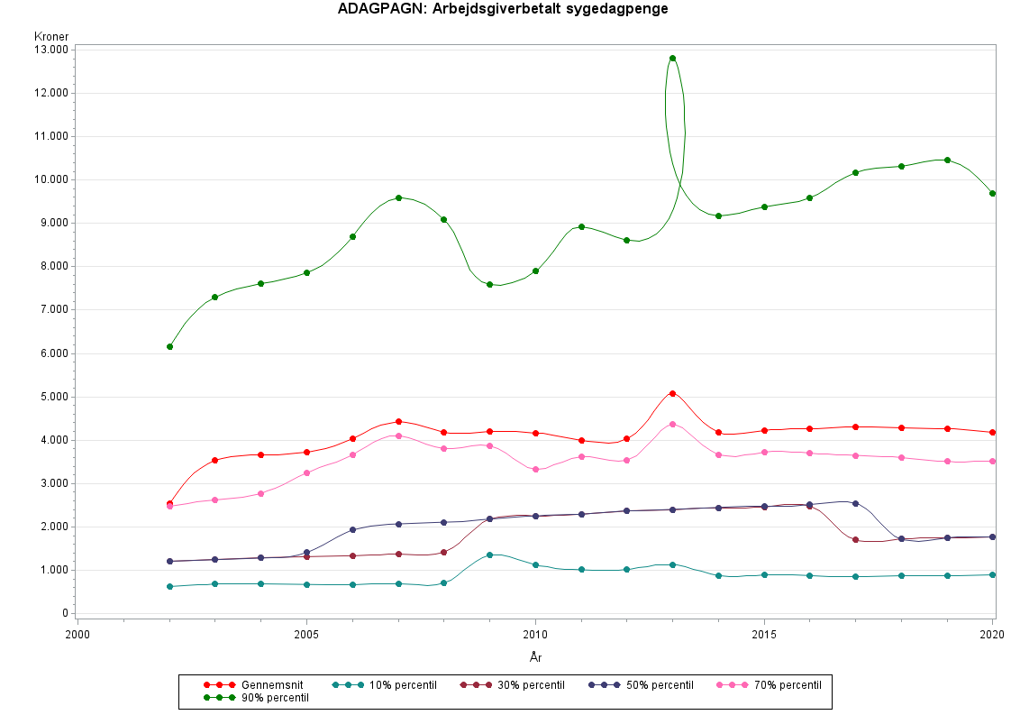 Fra 1994 til 2001 eksisterer variablen ADAGPAG, som også indeholder arbejdsgiverbetalte sygedagpenge. I ADAGPAG indgår også arbejdsmarkedsbidragsfri løn for arbejde udført i udlandet, evt. vederlag for konkurenceklausul.
