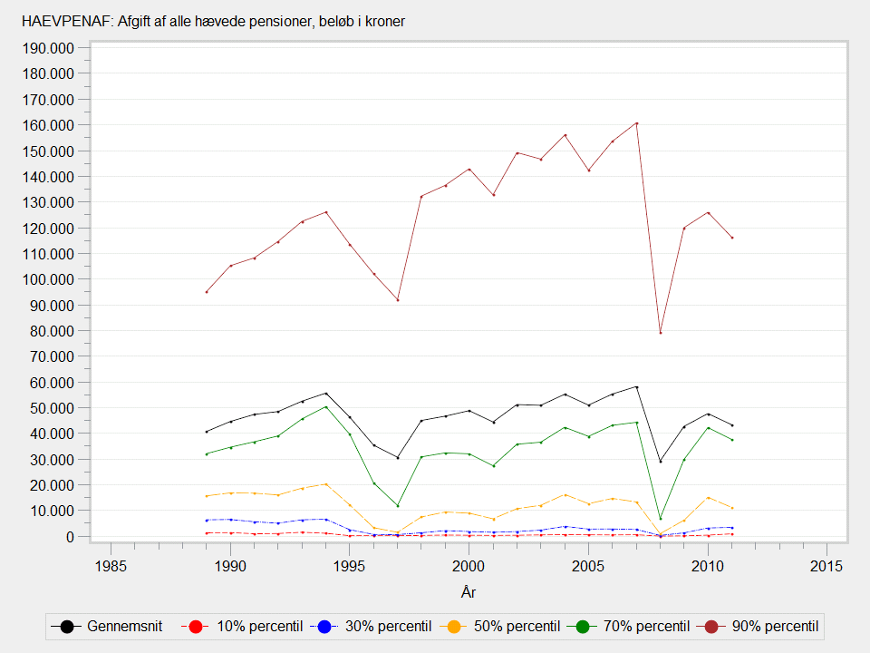 Afgift af alle hævede pensioner, se også variablen HAEVPEN (Værdi af alle hævede afgiftspligtige pensioner før fradrag af afgift).Denne variabel omfatter ikke engangsudbetalinger fra ATP, den Særlige Pensionsordning samt Lønmodtagernes Dyrtidsfond.