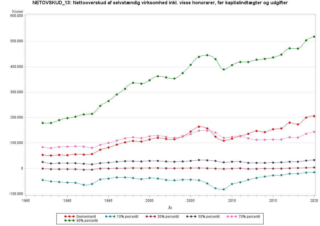 NETOVSKUD_13 er dannet i forbindelse med revisionen af 2013 indkomsterne. Læs mere om revisionen på www.dst.dk/ext/arbejde-loen-og-indkomst/rev13Nettooverskud af selvstændig virksomhed inkl. udenlandsk virksomhed og netto indtægt som medarbejdende ægtefælle. Fra 1987 inkl. nettoværdi af kapitalindkomster og udgifter i virksomheden.