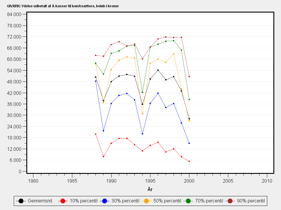 For 1994 ligger en del af iværksætterydelsen ikke i variablen QIVARK, men indgår dog i variablen ANDBISTANDYD. (Se også det vedlagte bilag vedr. usikkerheden på opgørelsen af denne variabel generelt, "opgørelse af udbetalinger fra a-kasser.doc").
