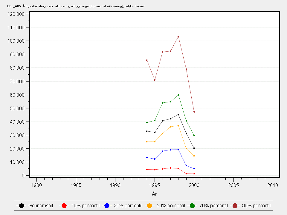 I 1994 indførtes lov om kommunal aktivering. Kontanthjælpsmodtagere skal ifølge loven have tilbud om aktivering i form af jobtræning, uddannelse eller aktiveringsforløb.BEL_AK5 rummer den samlede udbetaling i kroner til aktivering af flygtninge.