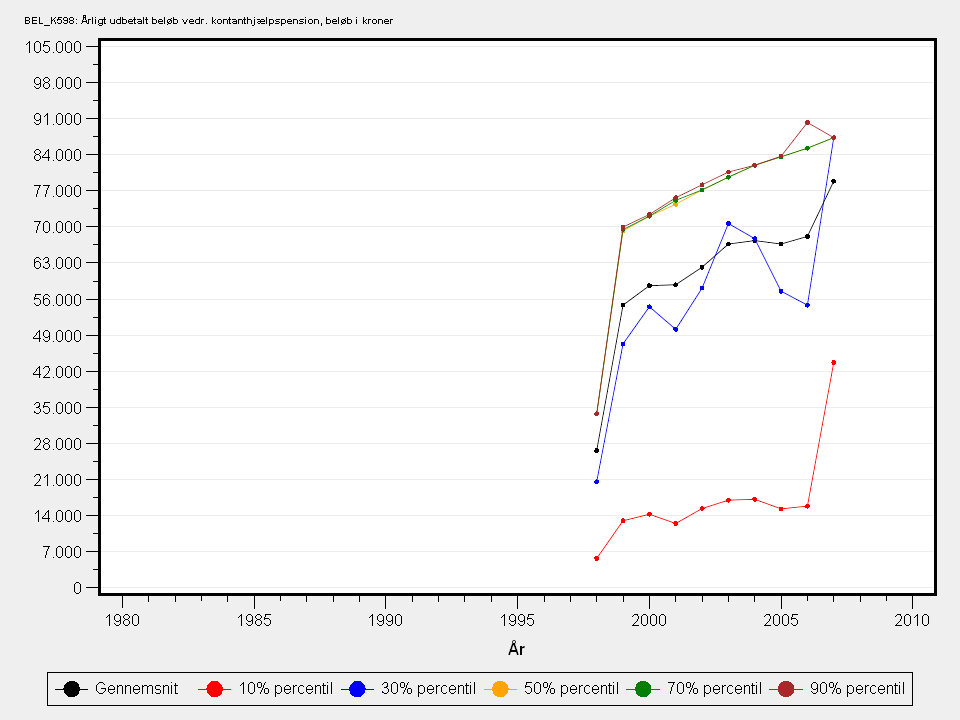Årligt udbetalt beløb vedr. kontanthjælpspension. Beløb i hele kroner.Detaljeret beskrivelse