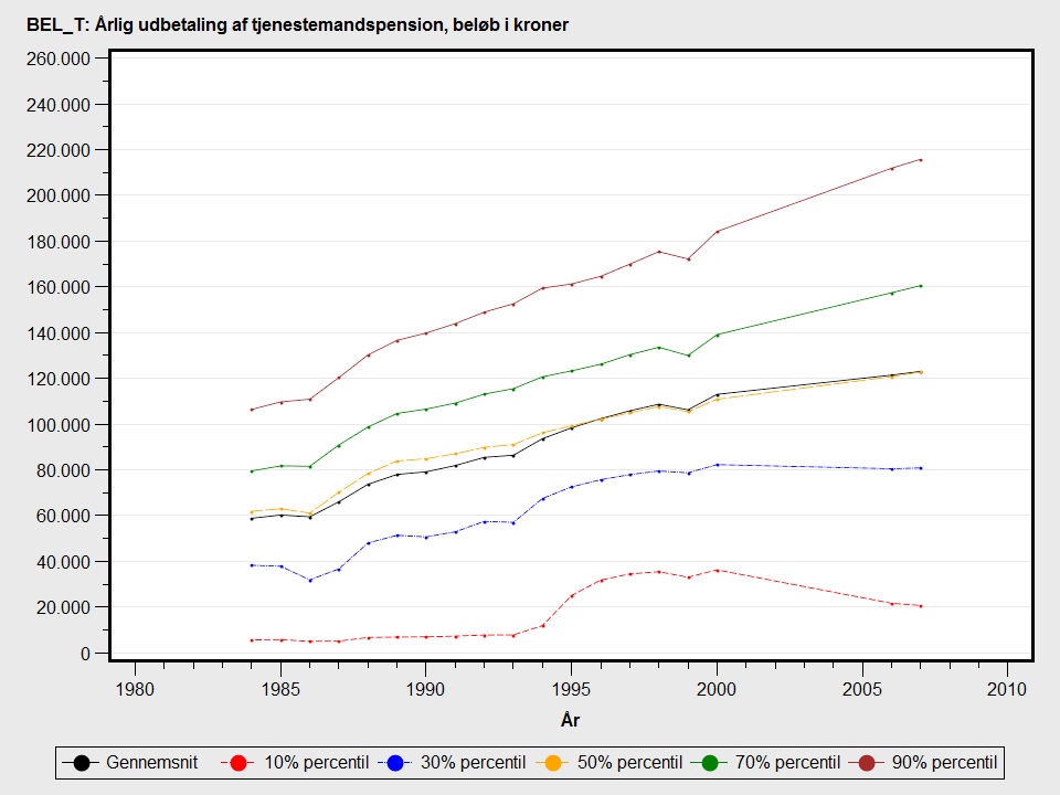 Det registrerede beløb vedrørende tjenestemandspension overføres fra indkomststatistikregistret (COR).Data for 2001-2005 eksisterer ikke og kan ikke fremskaffes.