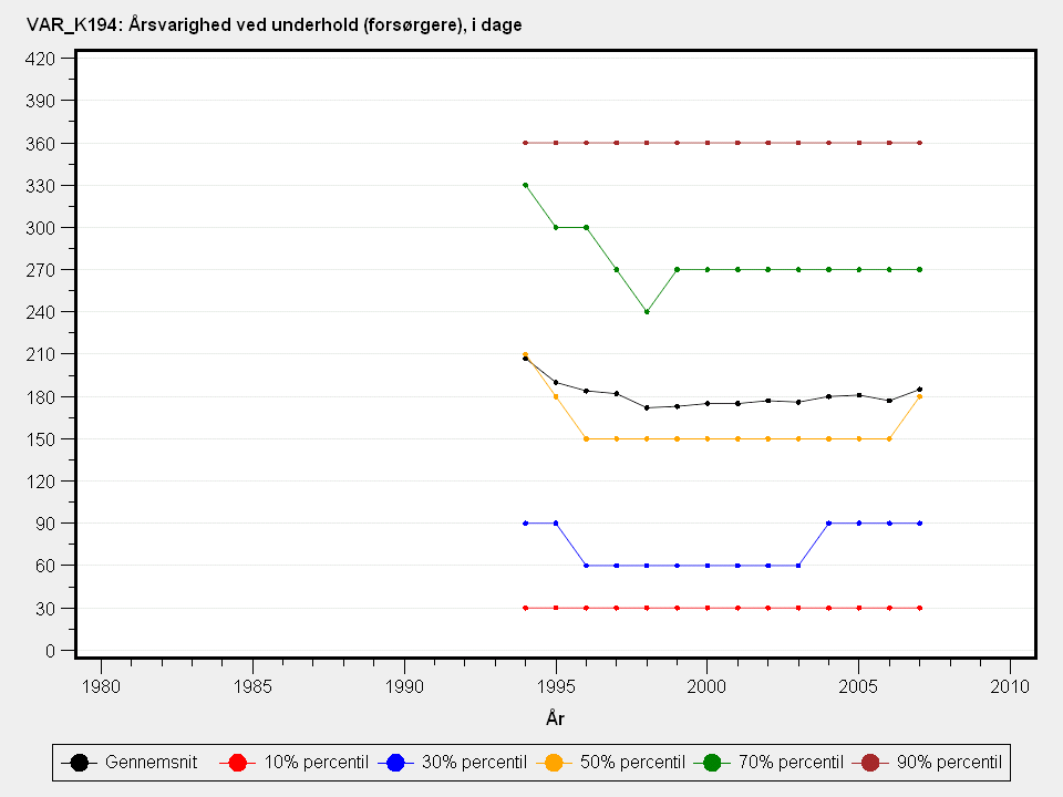 Årsvarighed af hjælp til underhold (forsørgere). Varigheden målt i dage i måneden (fast opgjort til 30 dage)Detaljeret beskrivelse
