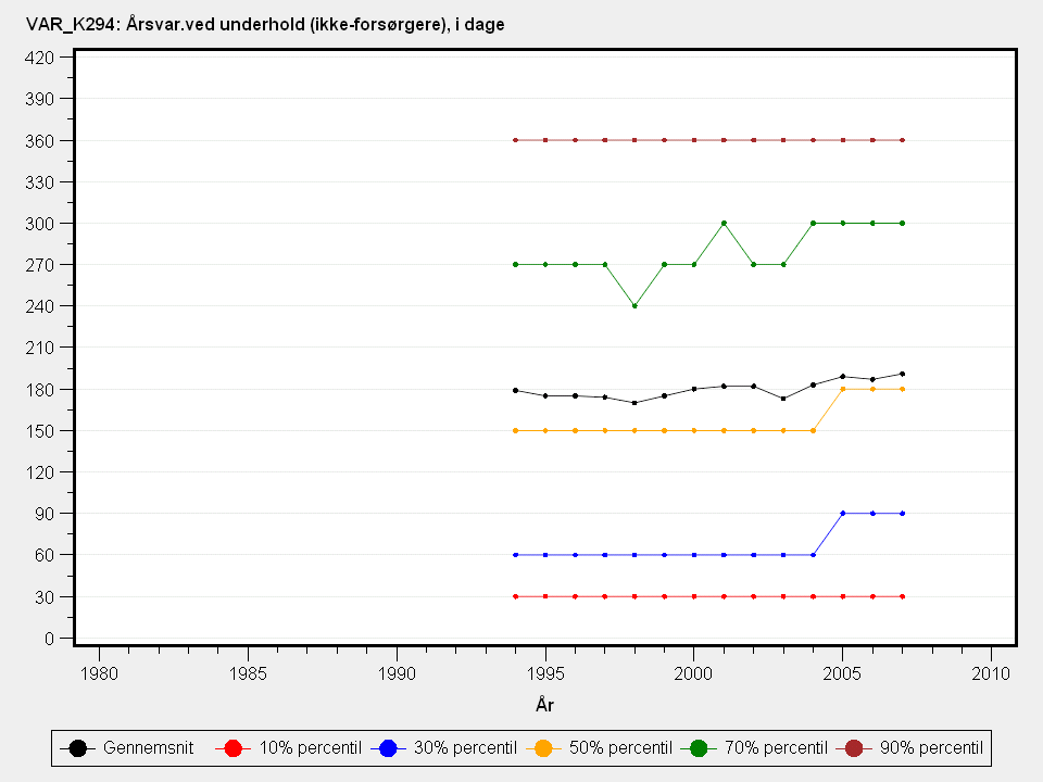 Årsvarighed af underhold/forsørgelse (ikke-forsørgere). Varigheden er målt i dage i måneden.Detaljeret beskrivelse