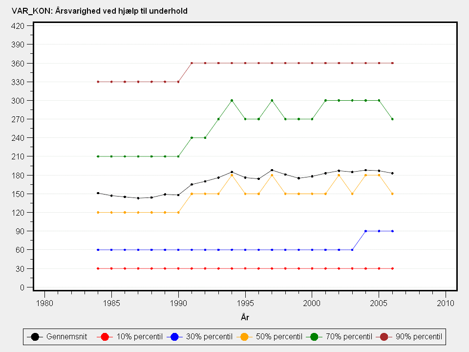 Årsvarighed af hjælp til underhold/forsørgelse. Årsvarighed af hjælp til underhold er målt i dage i måneden (fast defineret som 30 dage).Detaljeret beskrivelse