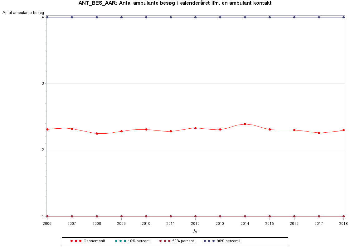 ANT_BES_AAR angiver antallet af ambulante besøg i et givent kalenderår i forbindelse med en ambulant kontakt.Hvis en person har haft mere end et besøg på samme dato knyttet til samme ambulante kontakt, registreres dette som ét besøg.
