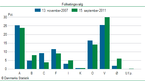 | Stemmer | | Parti | Antal | Pct. | | | | A. Socialdemokratiet | 11.530 | 23,7% | | B. Radikale Venstre | 3.900 | 8,0% | | C. Det Konservative Folkeparti | 1.868 | 3,8% | | F. SF - Socialistisk Folkeparti | 4.363 | 9,0% | | I. Liberal Alliance | 2.439 | 5,0% | | K. Kristendemokraterne | 195 | 0,4% | | O. Dansk Folkeparti | 6.884 | 14,1% | | V. Venstre, Danmarks Liberale Parti | 14.555 | 29,9% | | Ø. Enhedslisten - De Rød-Grønne | 2.910 | 6,0% | | Uden for partierne | 16 | 0,0% | | I alt gyldige stemmer | 48.660 | | | Blanke stemmer | 263 | | Andre ugyldige stemmer | 204 | | I alt ugyldige stemmer | 467 | | | I alt afgivne stemmer | 49.127 | |