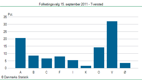 | Stemmer | | Parti | Antal | Pct. | | | | A. Socialdemokratiet | 240 | 20,4% | | B. Radikale Venstre | 100 | 8,5% | | C. Det Konservative Folkeparti | 78 | 6,6% | | F. SF - Socialistisk Folkeparti | 93 | 7,9% | | I. Liberal Alliance | 64 | 5,5% | | K. Kristendemokraterne | 18 | 1,5% | | O. Dansk Folkeparti | 166 | 14,1% | | V. Venstre, Danmarks Liberale Parti | 375 | 31,9% | | Ø. Enhedslisten - De Rød-Grønne | 40 | 3,4% | | I alt gyldige stemmer | 1.174 | | | Blanke stemmer | 3 | | Andre ugyldige stemmer | 2 | | I alt ugyldige stemmer | 5 | | | I alt afgivne stemmer | 1.179 | |