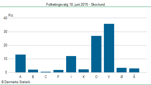 | Stemmer | | Parti | Antal | Pct. | | | | A. Socialdemokratiet | 72 | 13,1% | | B. Radikale Venstre | 11 | 2,0% | | C. Det Konservative Folkeparti | 2 | 0,4% | | F. SF - Socialistisk Folkeparti | 10 | 1,8% | | I. Liberal Alliance | 65 | 11,9% | | K. Kristendemokraterne | 12 | 2,2% | | O. Dansk Folkeparti | 147 | 26,8% | | V. Venstre, Danmarks Liberale Parti | 196 | 35,8% | | Ø. Enhedslisten - De Rød-Grønne | 18 | 3,3% | | Å. Alternativet | 15 | 2,7% | | I alt gyldige stemmer | 548 | | | Blanke stemmer | 4 | | Andre ugyldige stemmer | 1 | | I alt ugyldige stemmer | 5 | | | I alt afgivne stemmer | 553 | |